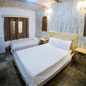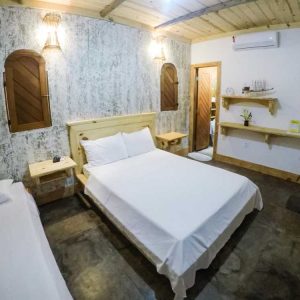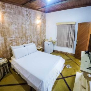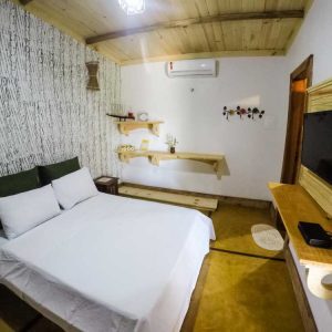 Quartos: com Ar condicionado, Frigobar, Kit de utensílios e TV com canais abertos, Cama de Casal e espaço para Rede.